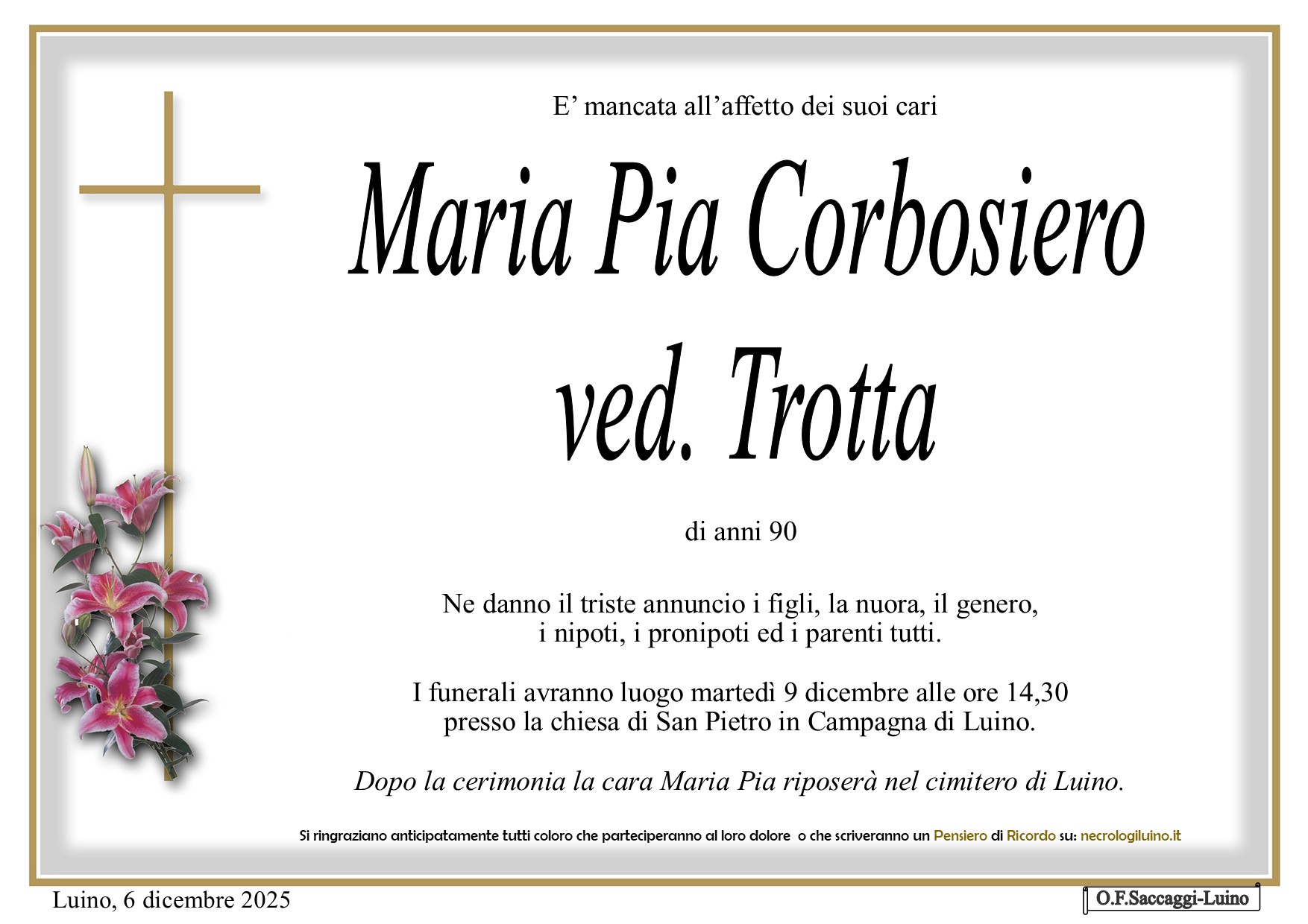 Al termine della cerimonia la cara Maria Pia riposerà nel cimitero di Luino.