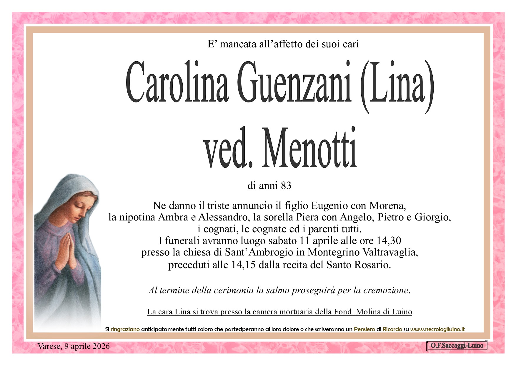 I familiari ringraziano anticipatamente tutti coloro che parteciperanno alla cerimonia funebre e tutti coloro che scriveranno con affetto un Pensiero di Ricordo.
